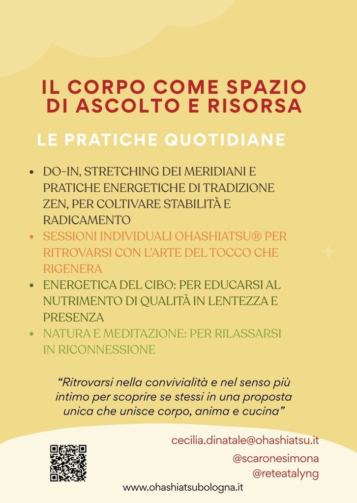Un week-end di benessere assoluto in collaborazione con Cecilia di Natale: “Radici e Nutrimento: mi Ritrovo”. Ohashiatsu, lo shiatsu del tocco, e il cibo come energia e nutrimento per radicare.