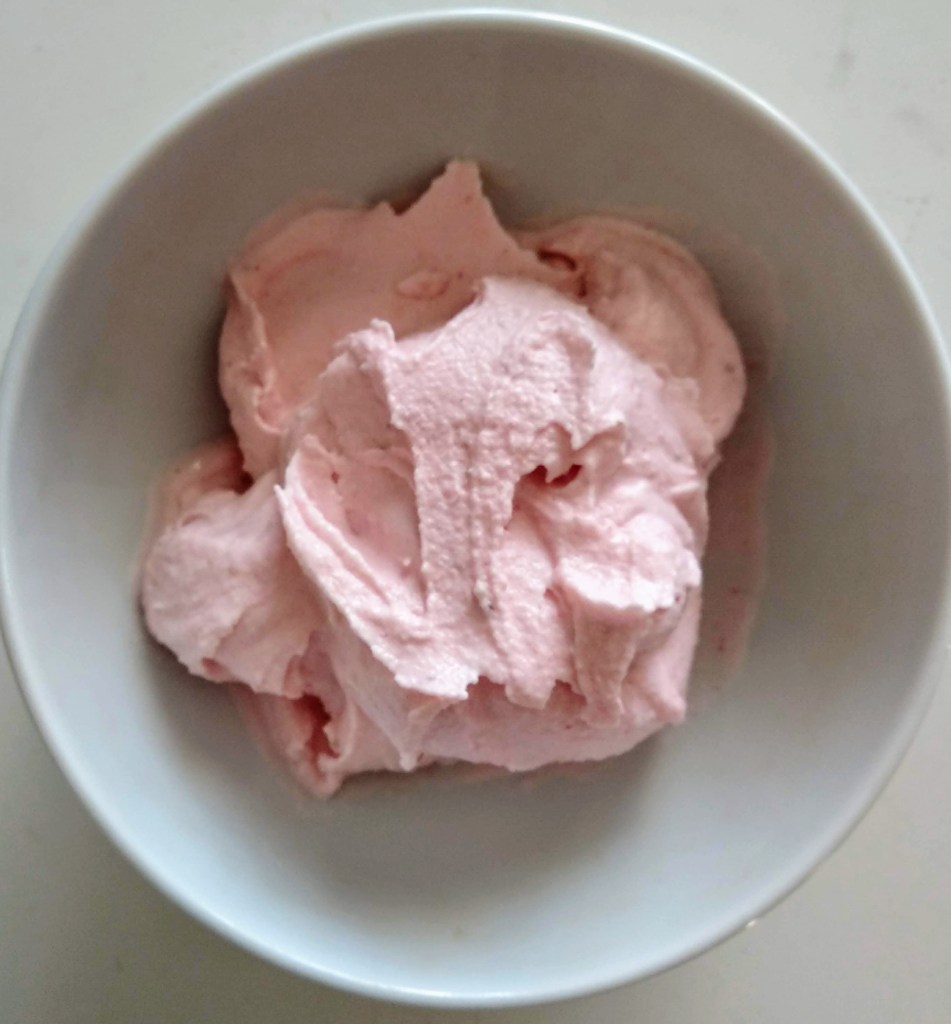 Frulla tutto partendo da una velocità minima e aumentando pian piano fino a una velocità medio alta. Questo per pochi secondi, finchè si forma una crema morbida. Servi subito!